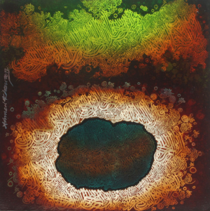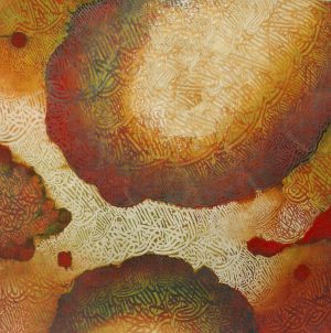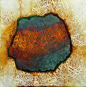 Ahmed Khan illustrates his art philosophy in a masterly fashion. He has perfected a unique and intricate process which gives his paintings a mystical, magical quality. Each painting is unique in its own way. In his own words Ahmed Khan explains; “In my works I have used calligraphy as a design element. I deal with purely abstract forms, something beyond spiritualism. When I started painting, I wanted to do something exceptionally extraordinary and original. I have created my own vocabulary for my creations.”