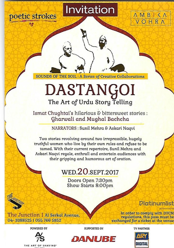 Two stories revolving around two irrepressible, hugely truthful women who live by their own rules and refuse to be tamed. With their current repertoire, Sunil Mehra and Askari Naqui regale, enthrall and entertain audiences with their gripping and humorous art of oration.