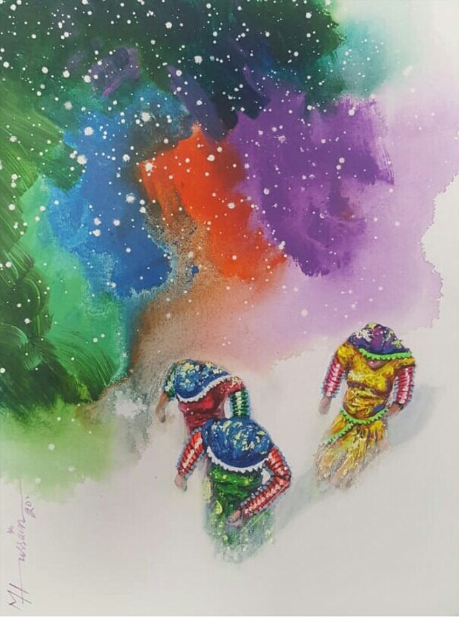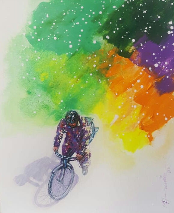 Working primarily in oil and acrylic, Chandio’s paintings are characterized by earthy tones, balanced compositions, and a subtle interplay of light and shadow. His subject matter often includes village scenes, human figures, and moments drawn from daily routines, presented with a sense of calm introspection and narrative depth. Through his brushwork and tonal harmony, he creates an atmosphere that is both nostalgic and timeless.