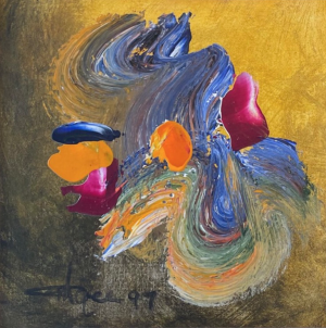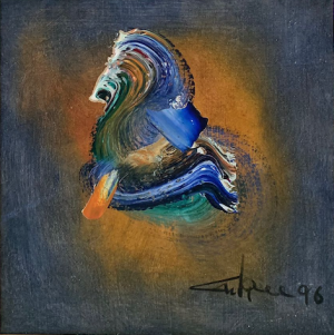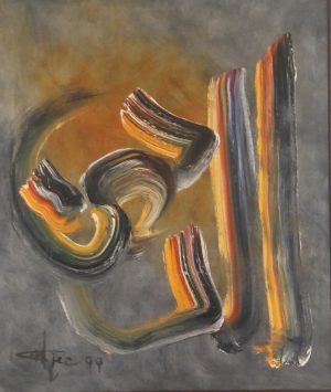 He was a gifted and consummately skilled naturalist portrait painter, but is best known worldwide for his abstract work that was inspired by Islamic calligraphy and influenced by the action painting movement of the 1950s and 1960s. He used materials such as mirror, glass and silver or gold leaf in his oil paintings, making them mixed media pieces. His calligraphy paintings are abstract and gestural interpretations of Arabic and Urdu letters. His paintings though bright and colourful, the paint was put on with great sensitivity vibrating with intense feelings. The total effect of his strong brush swirls are free, yet considered and well-thought out.
