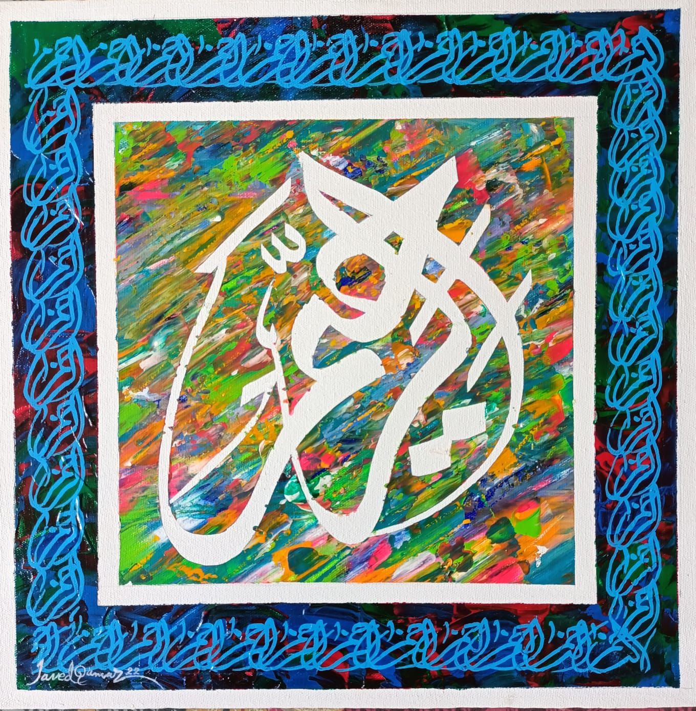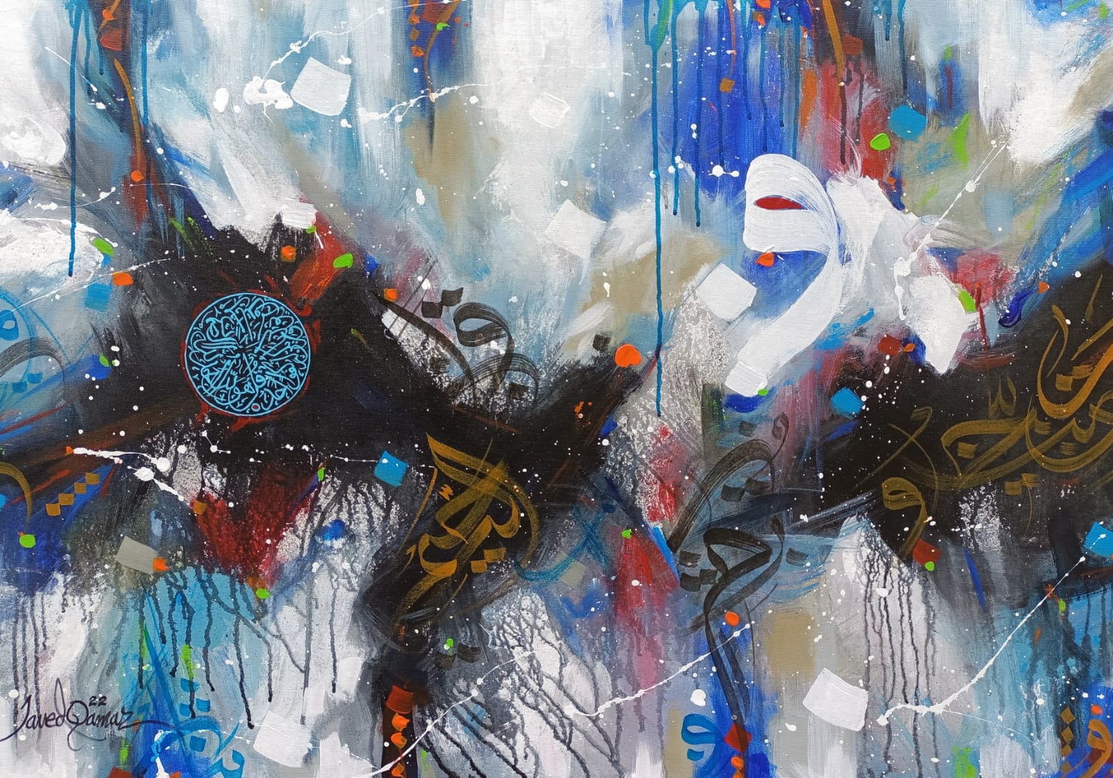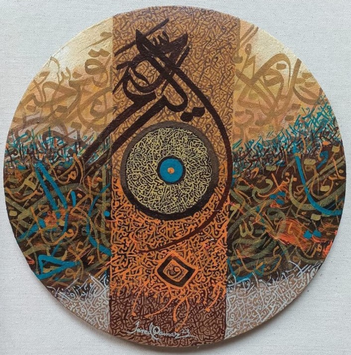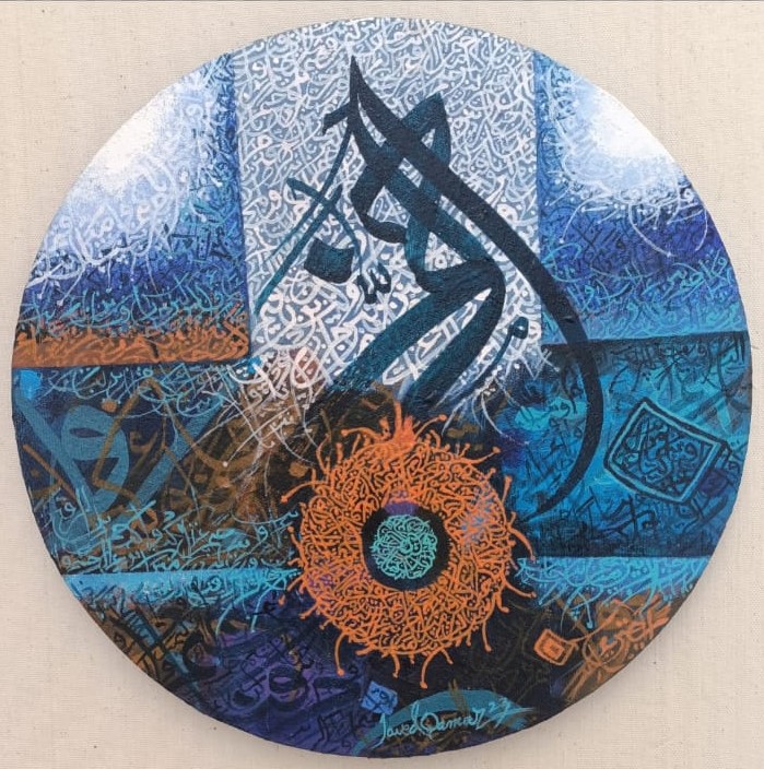 Javed Qamar’s passion and love for details is evident in his work but he is constantly developing new techniques thus affecting his work, giving it depth, meaning and maturity and this is where the mastery of Javed Qamar becomes evident. The painting starts from the middle of the canvas and spreads both right and left, exhibiting the broad outlay of visualization.