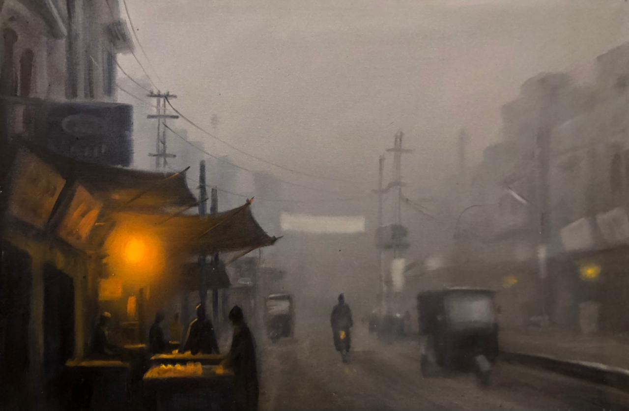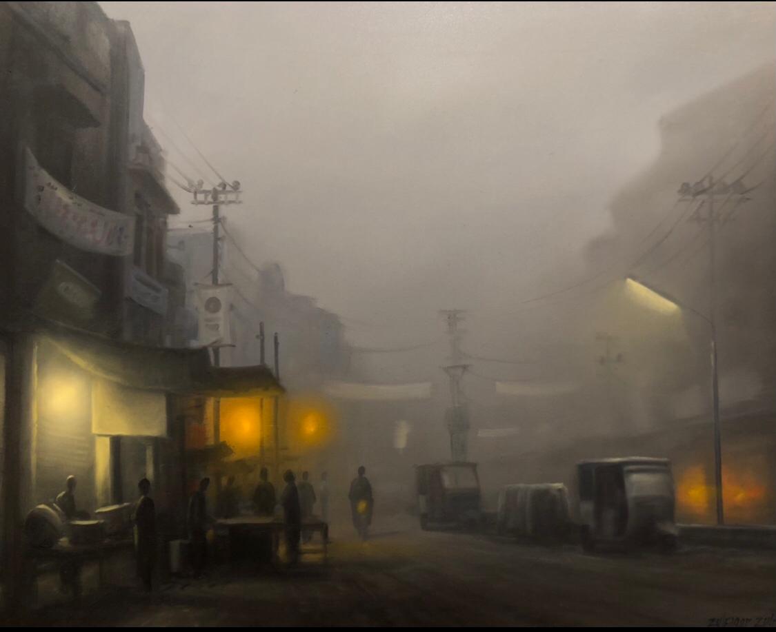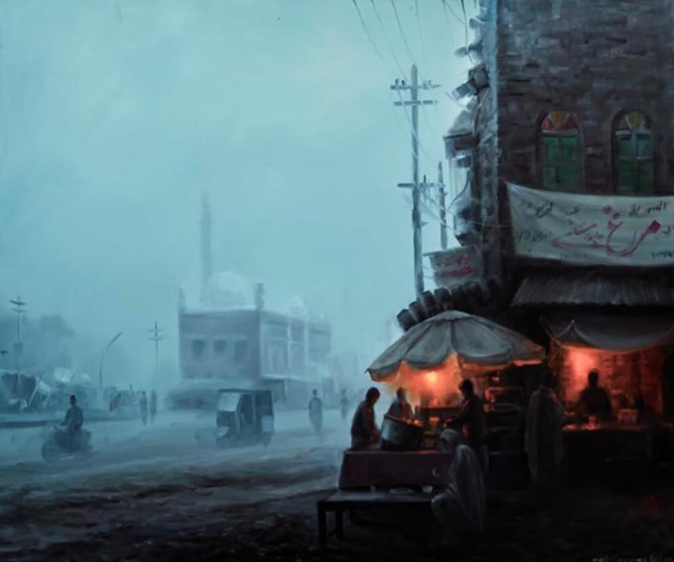 Zulfiqar Ali Zulfi’s landscapes show a profound understanding of his subject matter, his comprehension of the nuances of colour in his paintings, his appreciation for capturing seasons and different times of the day are painted in the most sensitive and aesthetically soothing manner. Just as English Romantic painter John Constable was known for his landscape paintings of Dedham Vale, better known as Constable County, Zulfi is well-known for his love of painting the city of Lahore and the surrounding rural areas. Technical proficiency aside, it is the emptive quality in his work just like Constable that can make a person see the peace embedded in his work. There is a beautiful tranquility about Zulfi’s landscapes; they convey an idea of poetic moments that can alight the viewer in his or her dark moments. His rich canvases reveal and explore diverse dimensions of realism but if looked upon closely, hints of Impressionism do come across. This must be due to his teacher and mentor Khalid Iqbal who recorded light and the atmosphere in his images without using stereotypical images. The presence of the breeze, light pouring through the trees and mist, the falling leaves and movement of figures are all participants in his work. Zulfi’s awareness, sense of observation and perspective of depth is regenerated with his selection of colour and style of application.Placing Zulfi’s work in context of the cultural conditions of our time, his work is met with a philosophical liking and a pictorial representation of acceptable appreciation. According to Zulfi, his paintings are a reflection of who he is as a person, sensitive in nature and creative in spirit.